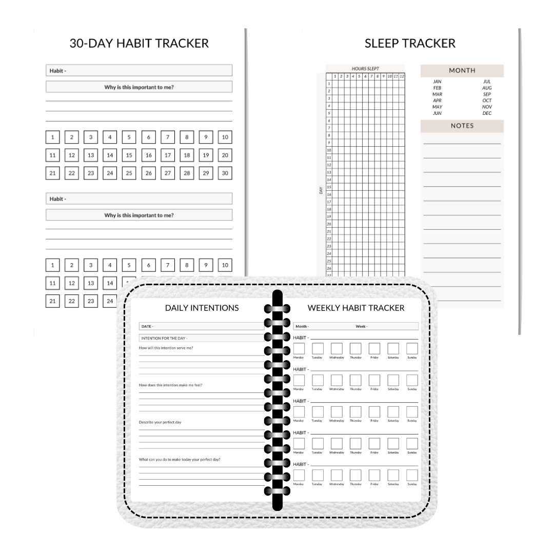 Designed for women who want to prioritise their mental, physical, and emotional health, this Wellness Planner helps you stay mindful, track habits, plan nourishing meals, and develop a positive daily routine that aligns with your goals.