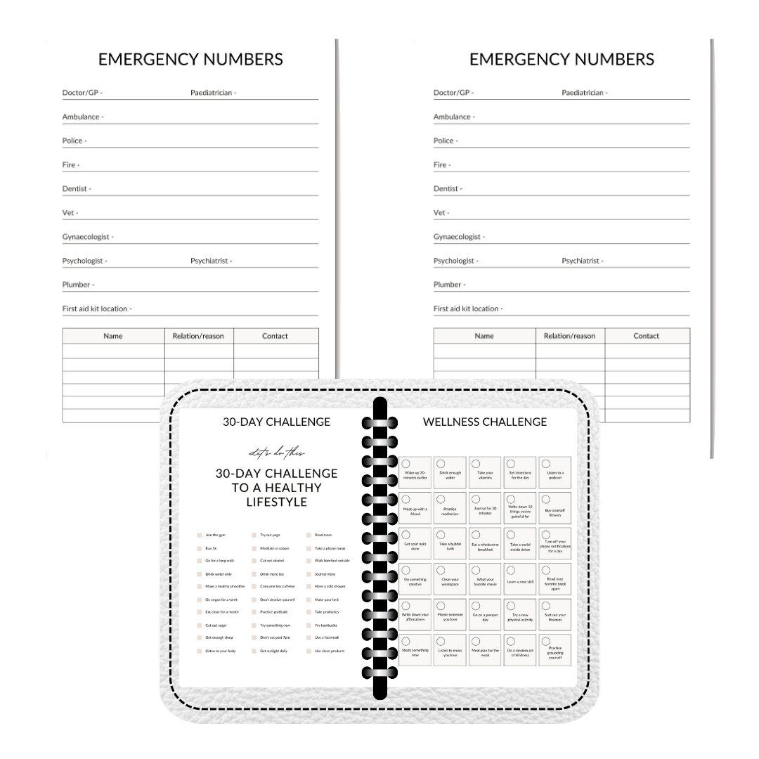 Whether you’re focusing on self-care, fitness, or emotional balance, these structured pages guide you through every aspect of your wellness journey — helping you feel organised, motivated, and empowered to thrive.